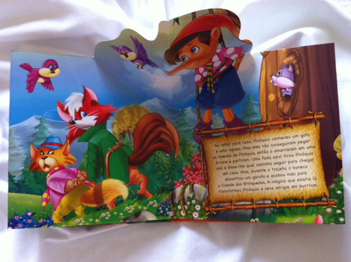 Esta é uma versão da história original de Pinóquio, o boneco de madeira que deseja se tornar um menino de verdade. O original, escrito por Carlo Collodi, data de 1881 e existem várias releituras, a maioria focando nos aspectos educativos da narrativa. Um exemplo é esta versão da coleção Pop-up da Editora Ciranda Cultural.
